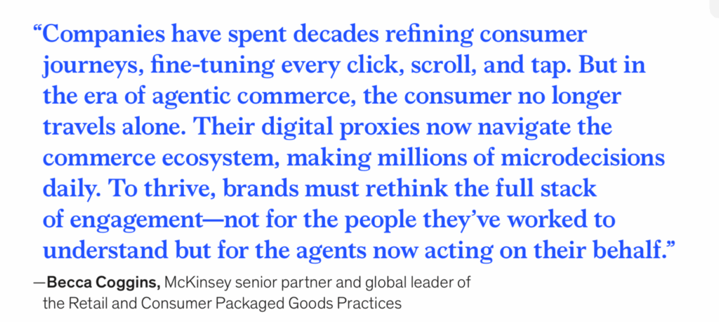 Ok. That’s my explanation for ecommerce agents. It ties pretty closely to the McKinsey framework. And this all raises important questions for merchants and brands.
