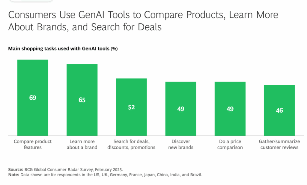 Here is a good slide from BCG about how consumers are using GenAI in retail.