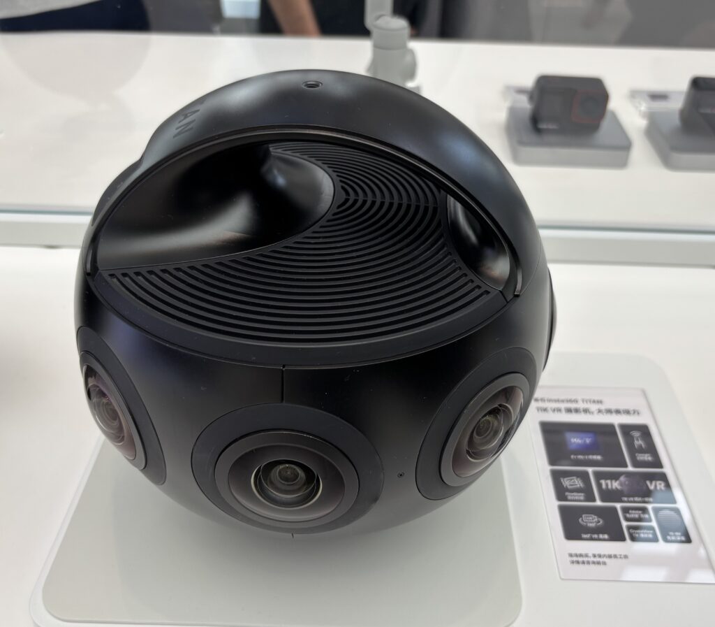 Obviously, this is what they are famous for. And what initially got everyone’s attention back in 2016-2017. Today (10 years after founding), Insta360 dominates the 360-degree camera market globally (+67% market share). Their primary competitors are Ricoh and GoPro are. Here is their latest 360 camera, the 8k X5: That sphere below it is another 360-degree camera.