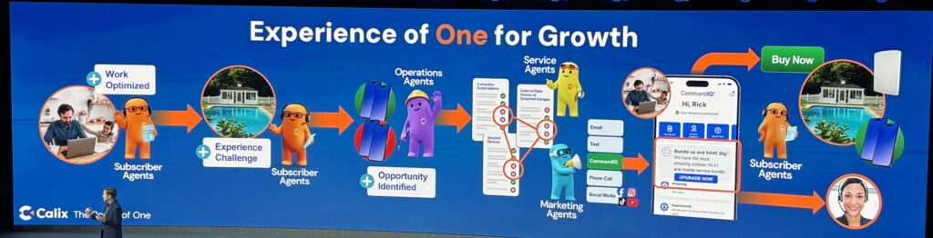 But Calix appears to have gone “all in” on personalization using agents. They showcased their AI-native platform. Instead of a human analyst looking at spreadsheets, AI Agents autonomously monitor subscriber data to identify specific patterns.