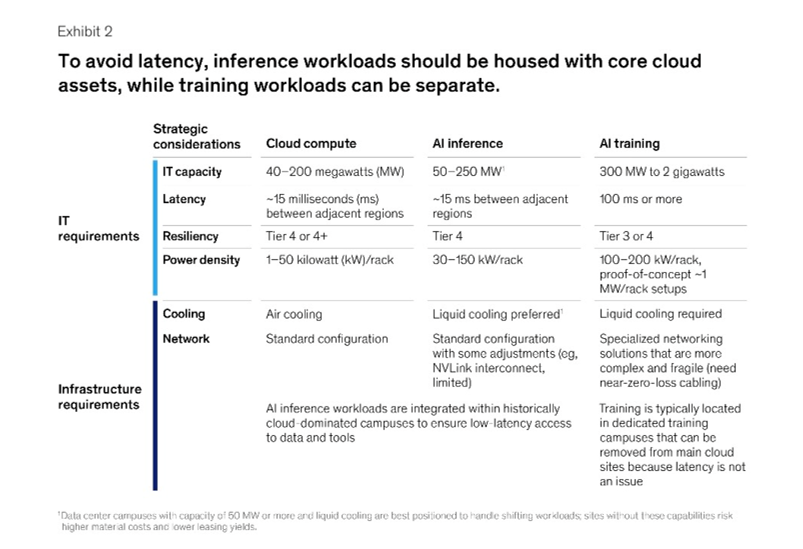 Here is a good summary (also McKinsey) of how cloud data centers are evolving into a mixture of traditional compute, training and inference. Which have very different capabilities and requirements.