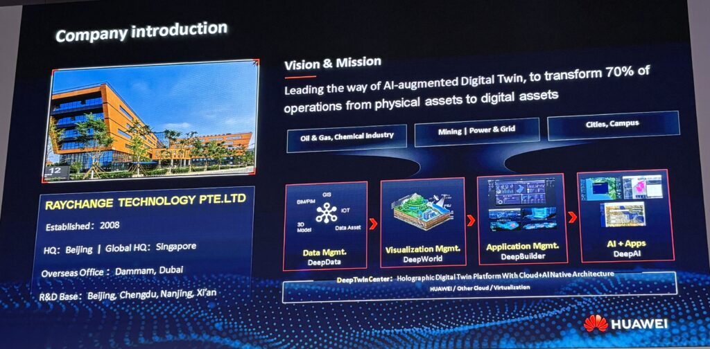 RayChange is a China and Singapore-based company that has been creating digital twins since 2008. Specifically, they are in the business of converting physical assets into digital assets.