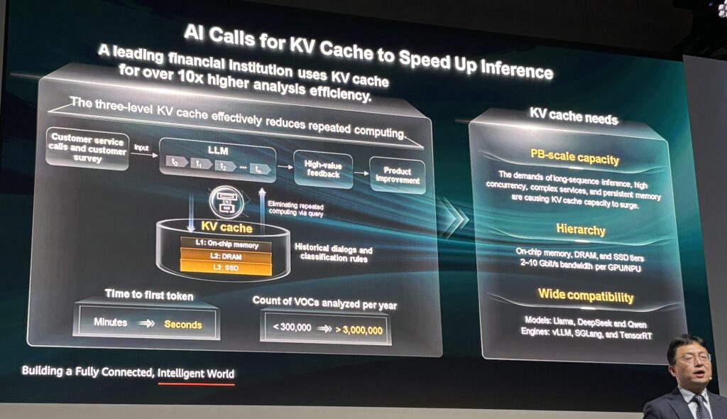 For example, in AI customer service scenarios, this technology applies intelligent tiering and management for KV cache to greatly expand the context window and reduce repeated computing. This results in a 90% reduction in time to first token (TTFT), significantly improving the speed of AI responses.