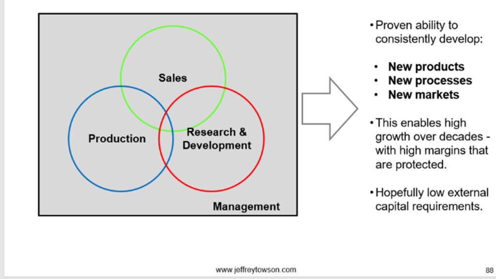 I mentioned that 50% of their staff are in R&D. But the trick with R&D is that performance is not the same as headcount or money spent. Small teams often outperform larger ones. Here is Phil Fisher’s framework for assessing R&D.